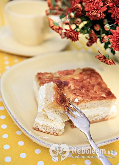 Очень понравится и детям, и взрослым яблочный пирог с творогом. При невысокой калорийности пирог с творогом полезен для организма. Для его приготовления надо взять один стакан муки грубого помола или овсяной муки, два яйца, четыре белка, половину стакана молока (0%), половину столовой ложки фруктозы, немного соли, одну чайную ложку соды, гашеную лимонным соком. Для начинки понадобится 200 граммов творога, две столовые ложки йогурта, одна столовая ложка изюма, два яблока. Все ингредиенты для теста надо смешать в глубокой миске. Смазать противень маслом, выложить тесто и дать ему постоять пять-десять минут. В это время нашинковать яблоки тоненькими ломтиками, смешать творог с йогуртом и изюмом. Выложить творог на тесто, аккуратно разровнять, сверху положить яблочные ломтики. Выпекать 2-30 минут при температуре 180 градусов.