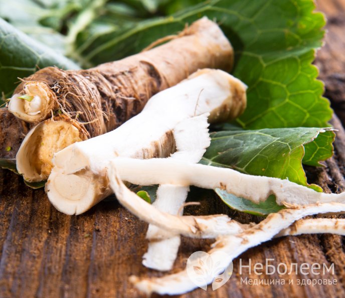 Для лечения обычно используют тертый хрен и отжатый из него сок.