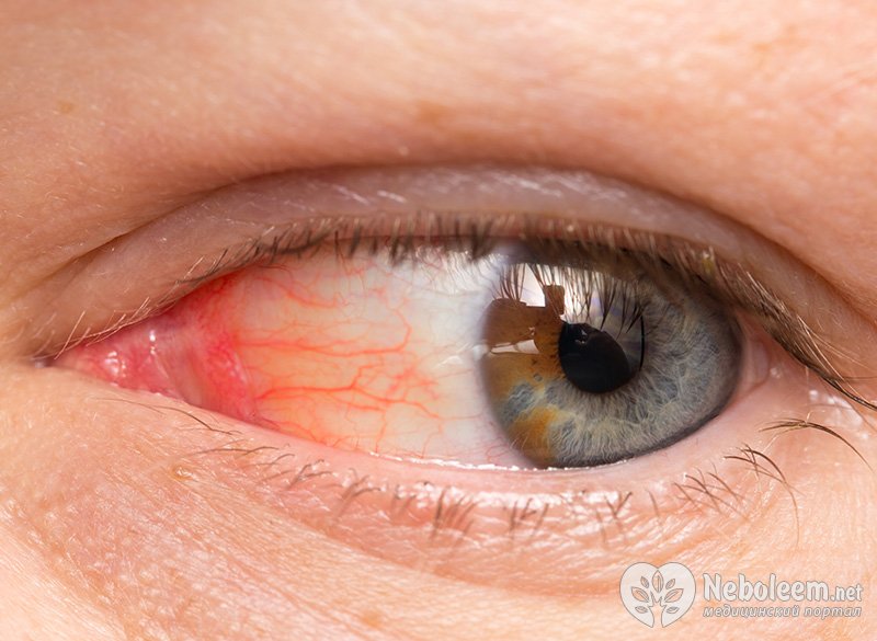 Конъюнктива. Краснеет и воспаляется. Отмечается жжение, зуд и слезотечение;