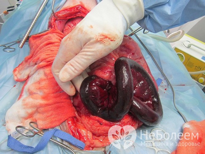 Хирургическое лечение заключается в удалении пораженного участка кишки, а также восстановлении кровоснабжения пораженной области кишечника. При перитоните также проводится промывание брюшной полости физиологическим раствором и антисептиками.