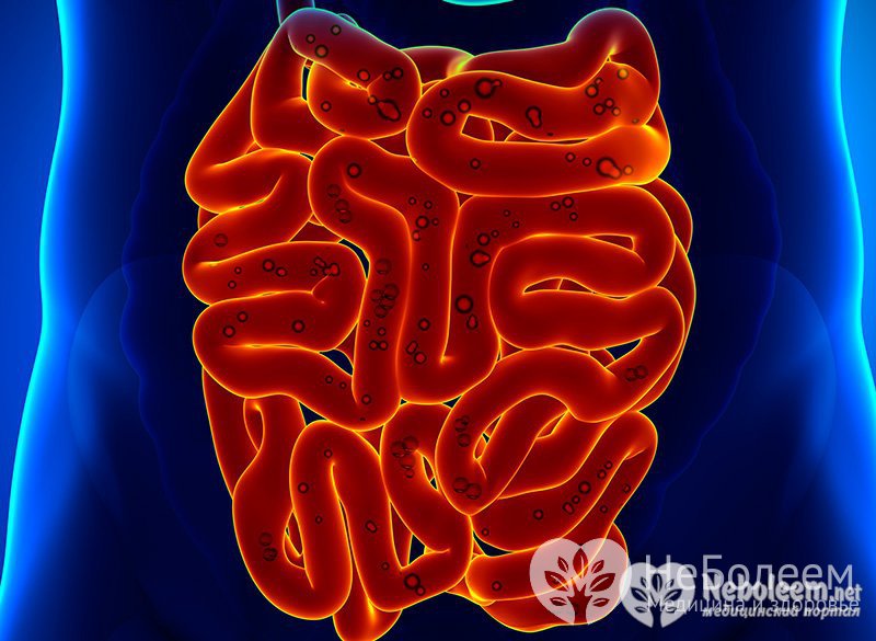 Развивающийся спазм тонкого кишечника характеризуется вздутием живота, утробным урчанием, головной болью, снижением артериального давления.